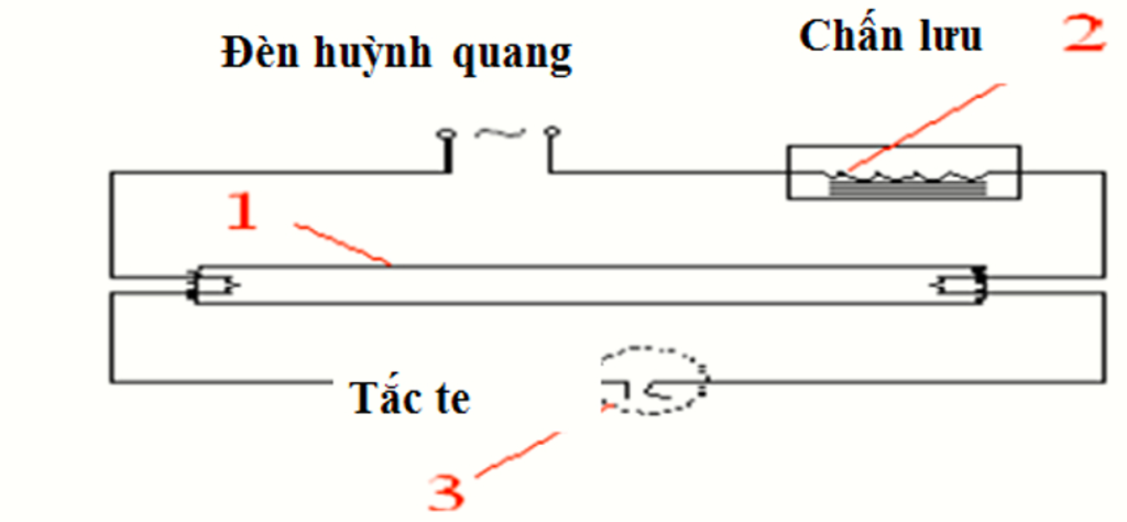 Cách đấu: chấn lưu mắc nối tiếp với đèn ống huỳnh quang