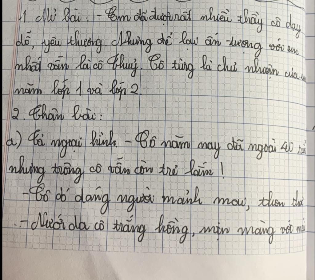 a) Mở bài: Giới thiệu chung về cô giáo mà em muốn miêu tả: