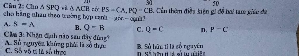 $\Delta SPQ$ và $\Delta ACB$ có hai cạnh bằng nhau