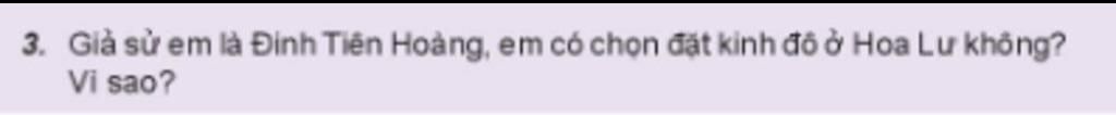 - Nếu đóng vai là Đinh Tiên Hoàng, em vẫn sẽ chọn đặt kinh đô ở Hoa Lư (Ninh Bình) vì: