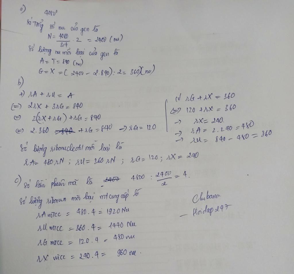 Vậy : `{(rA = 480Nu),(rU = 360Nu),(rG = 120Nu),(rX = 240Nu):}`