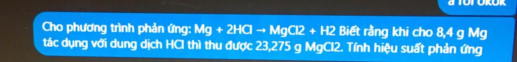 $m_{MgCl2}$ lý thuyết thu được $=0,35.95=33,25(g)$