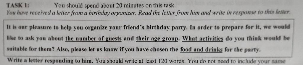 You have received a letter from a birthday organizer. Read the letter from him and write in response to this letter.
