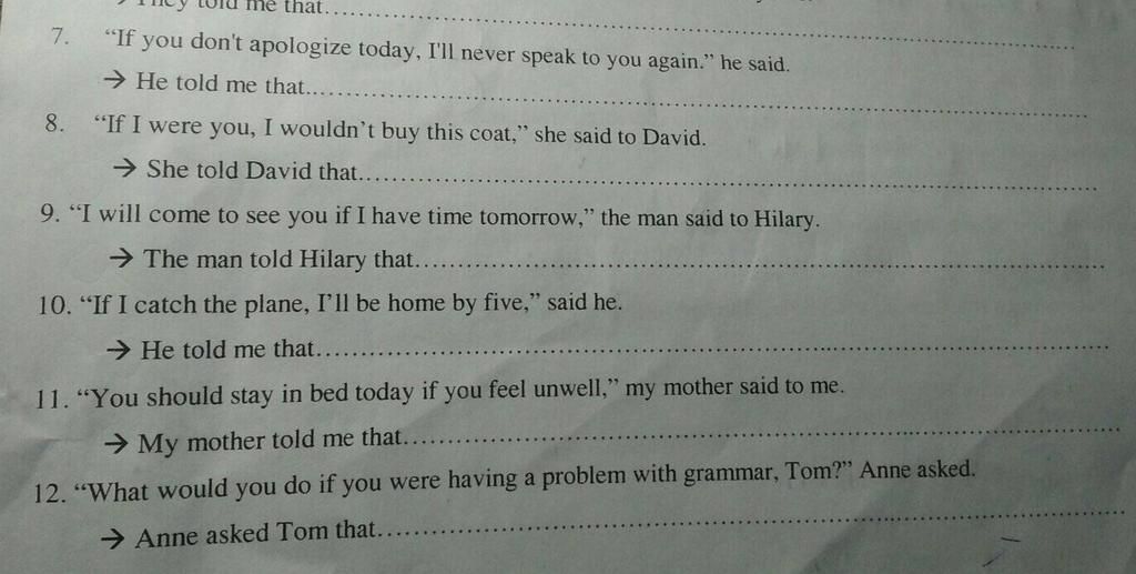 `9.` The man told Hilary that he would come to see her if he had time the next day.