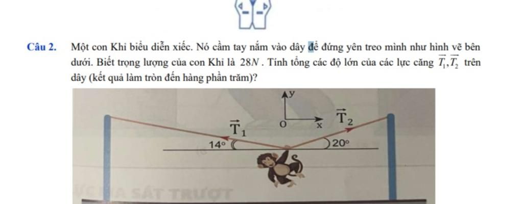 dưới. Biết trọng lượng của con Khi là 28N . Tính tổng các độ lớn của các lực căng T,T, trên
