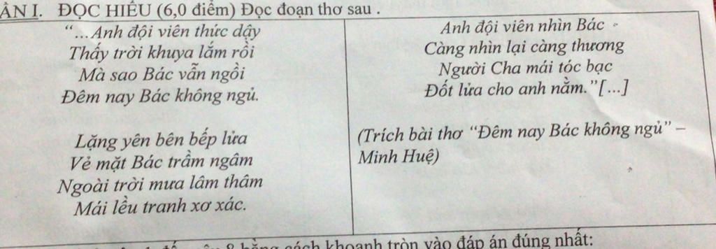 Câu 1: Em có suy nghĩ gì về hình ảnh của Bác trong đoạn thơ trên?
