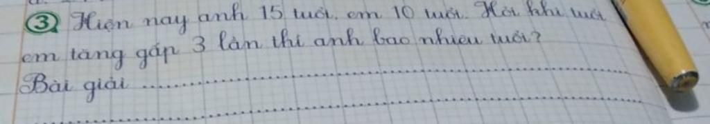 vì anh hơn em 5 tuổi nên khi tuổi của em tăng gấp 3 lần thì anh có số tuổi là: