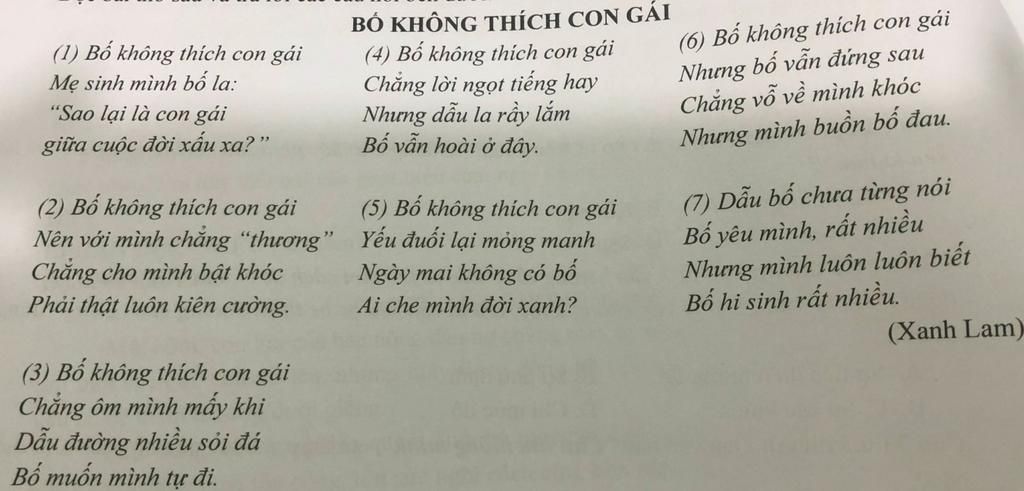 Chỉ ra cách gieo vần trong khổ thơ thứ nhất bài Bố Không Thích Con Gái.