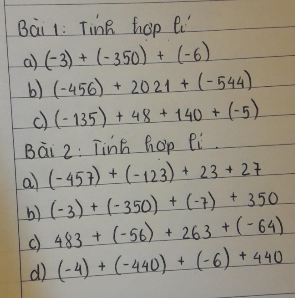 `b)(-3)+(-350)+(-7)+350`
