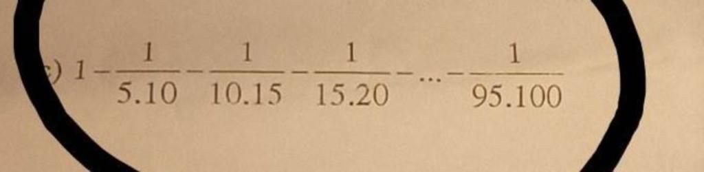 `1 -1/(5.10) -1/(10.15) -....-1/(95.100)`