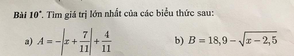 a) `A=-|x+\frac{7}{11}|+\frac{4}{11}`