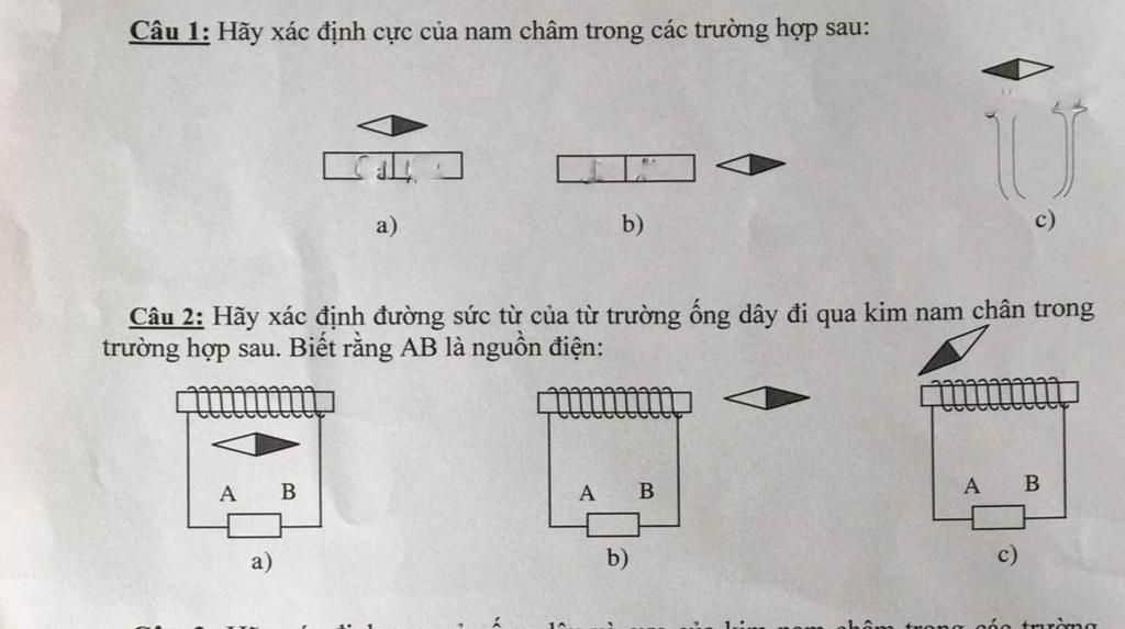 Câu 1: Hãy xác định cực của nam châm trong các trường hợp sau: