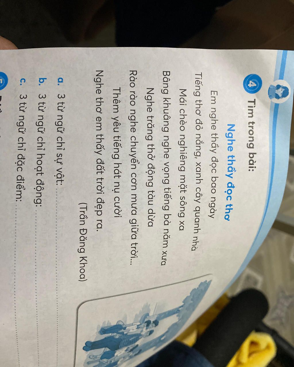 `a)3` từ ngữ chỉ sự vật : `cây,nhà,mái` `chèo,sông,trăng,...`