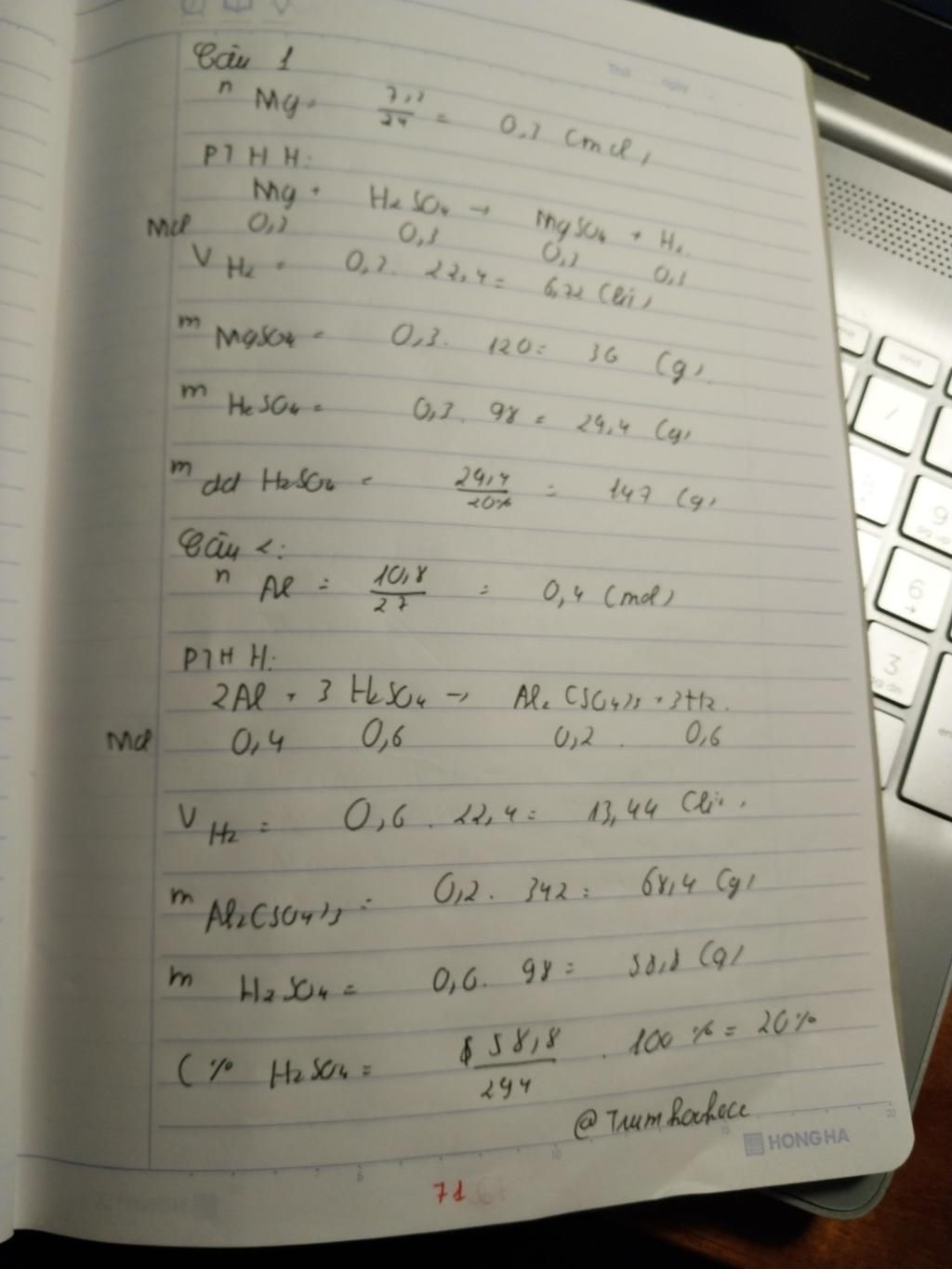 PTHH: 2Al + 3H2SO4 → Al2(SO4)3 + 3H2↑