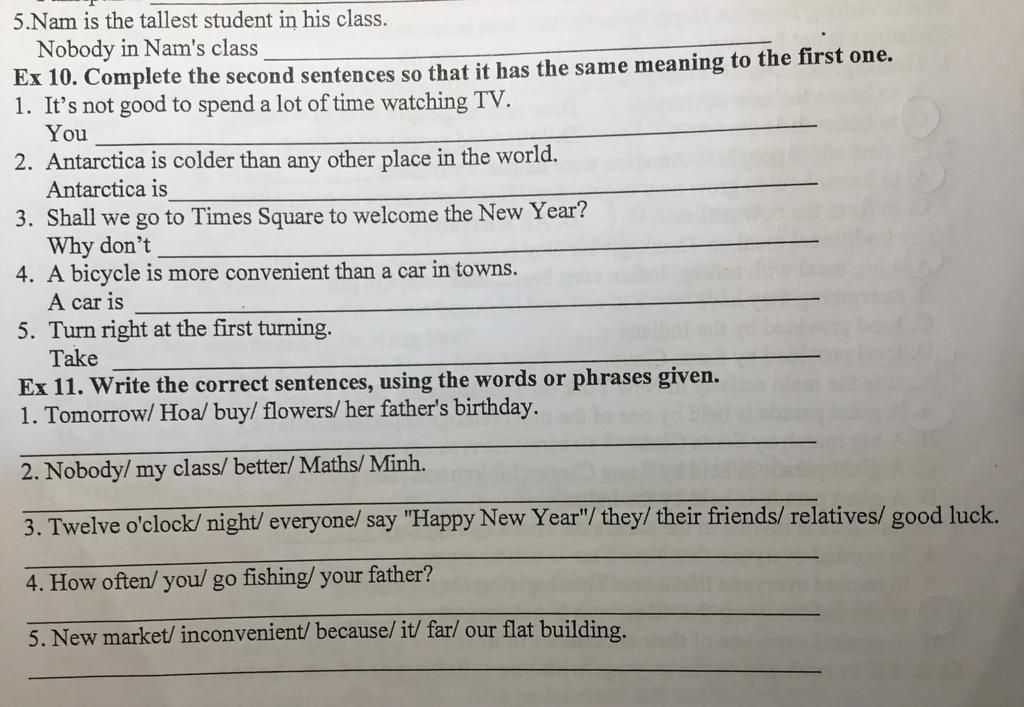 Ex 10. Complete the second sentences so that it has the same meaning to the first one.