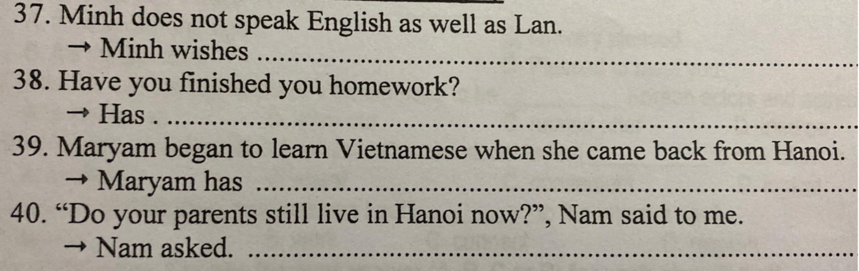 `37.` Minh wishes he spoke English as well as Lan.