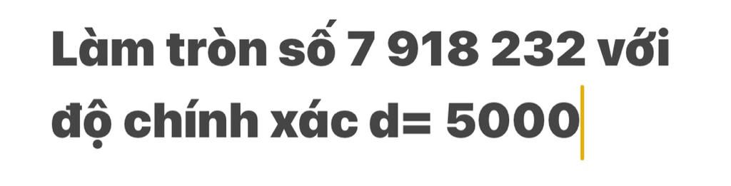 Để kết quả làm tròn có độ chính xác là 5000, ta làm tròn đến hàng chục nghìnÁp dụng quy tắc làm tròn ta được: 7 918 232 ≈ 7 920 000