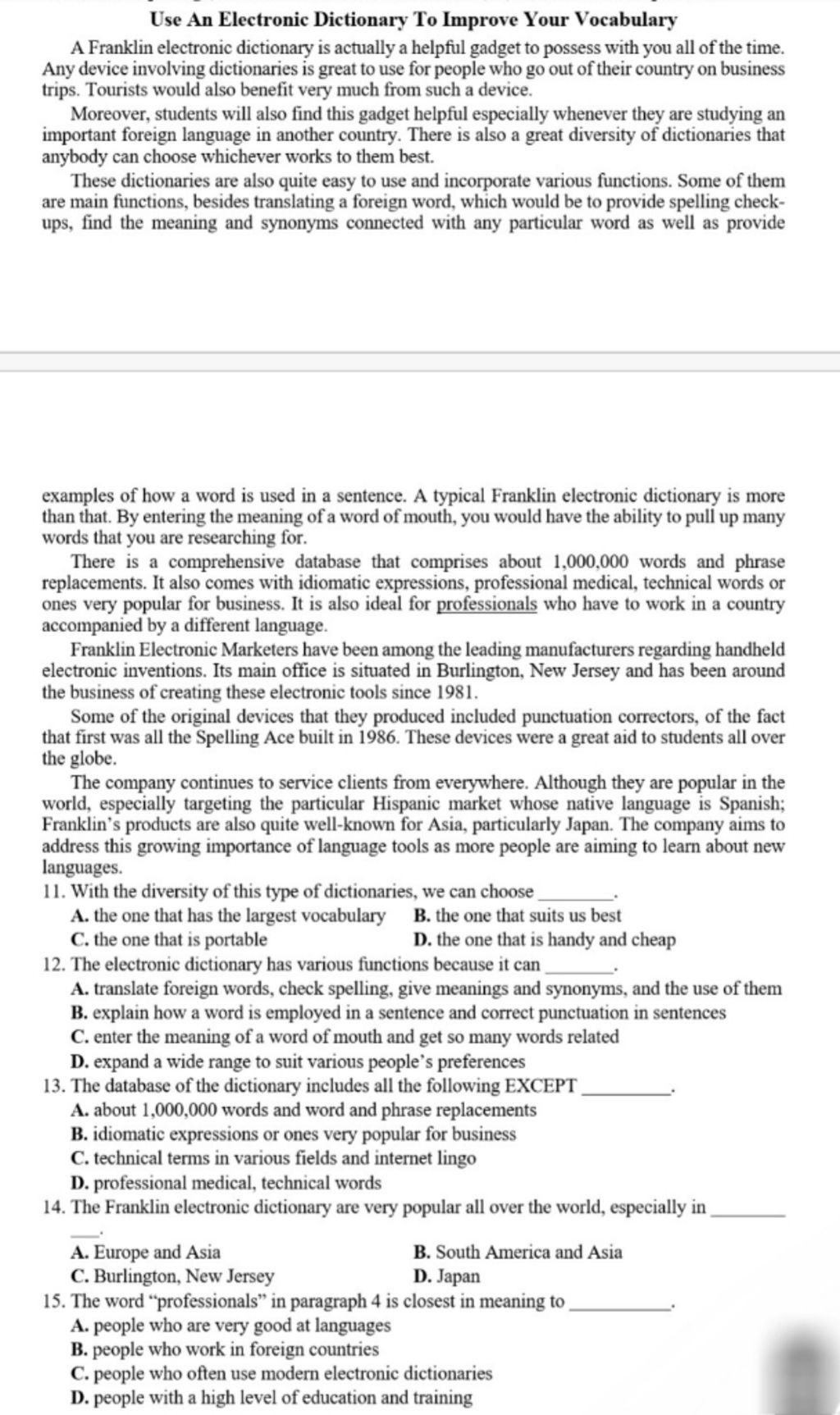 14. D (Franklin's products are also quite well-known for Asia, particularly Japan.)