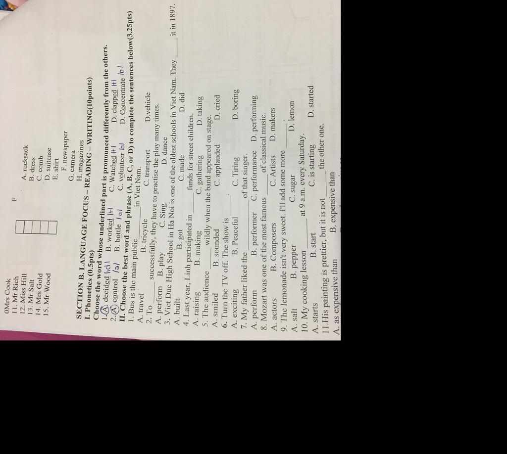 SECTION B. LANGUAGE FOCUS - READING-WRIT