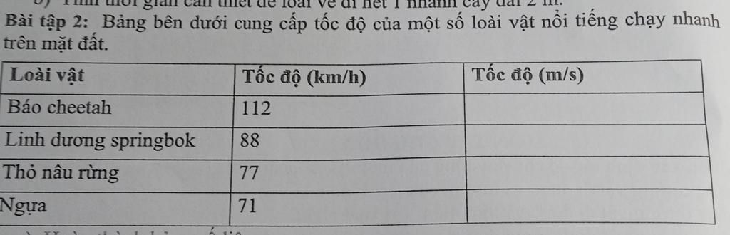 $\text{Linh dương springbok : Tốc độ 24,4444444 m/s }$