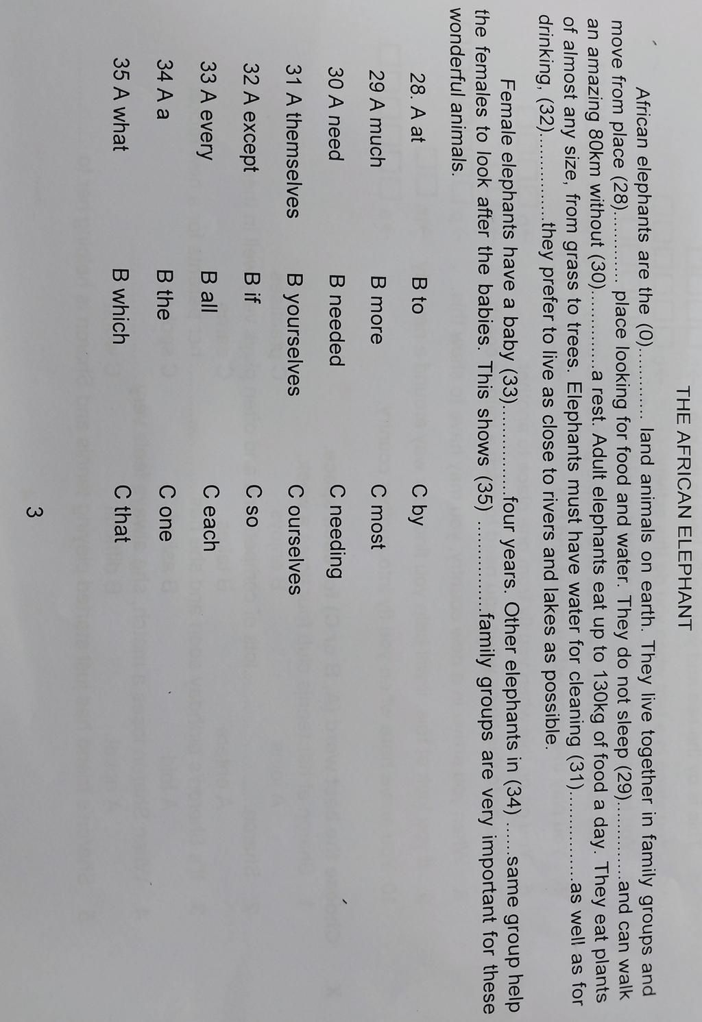African elephants are the (0)............. land animals on earth. They live together in family groups and