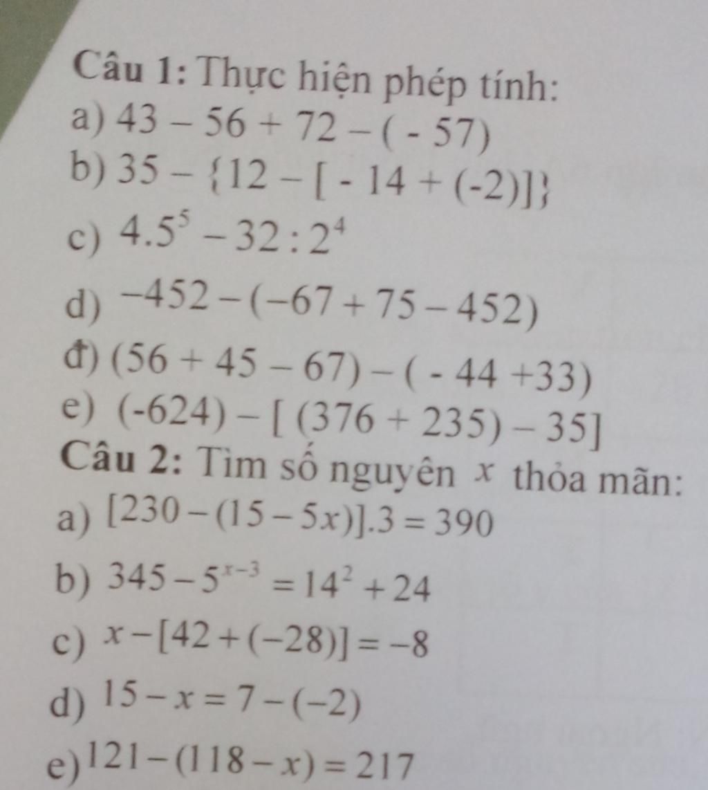 Câu 2: Tìm số nguyên x thỏa mãn: