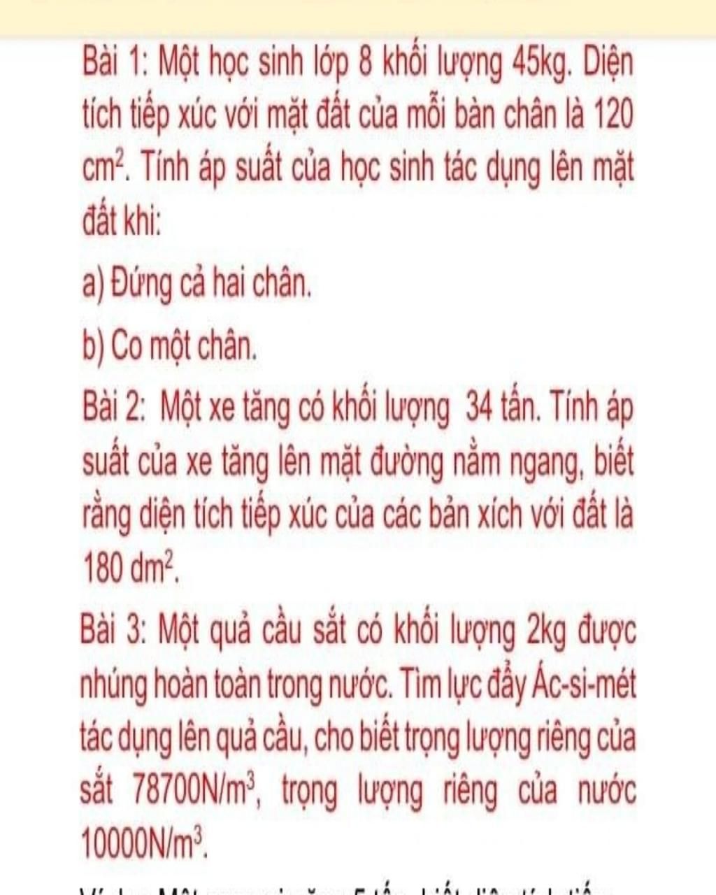 áp suất tác dụng lên mặt đất khi đứng co 1 chân là `37500 Pa`