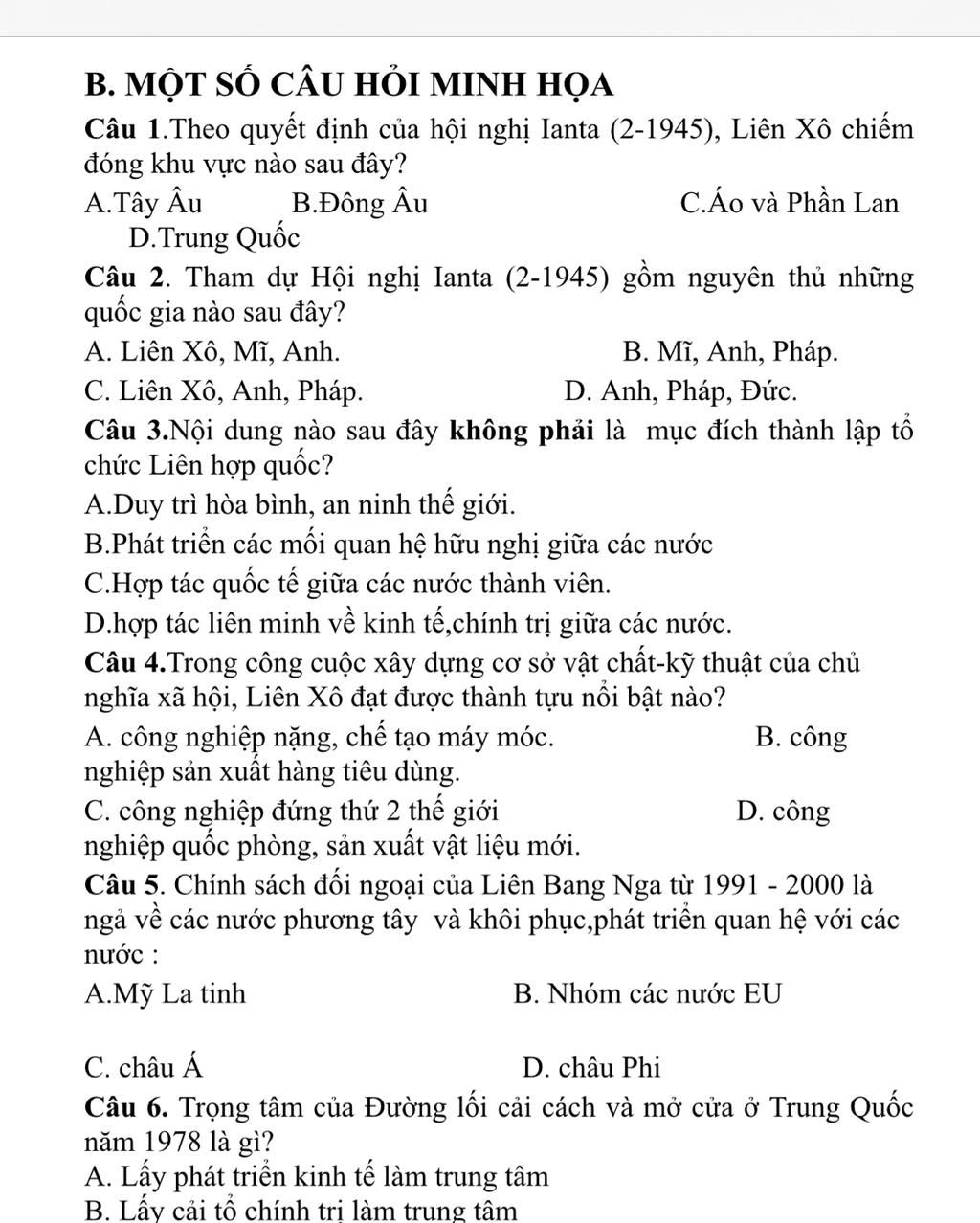 Câu 1.Theo quyết định của hội nghị Ianta (2-1945), Liên Xô chiếm