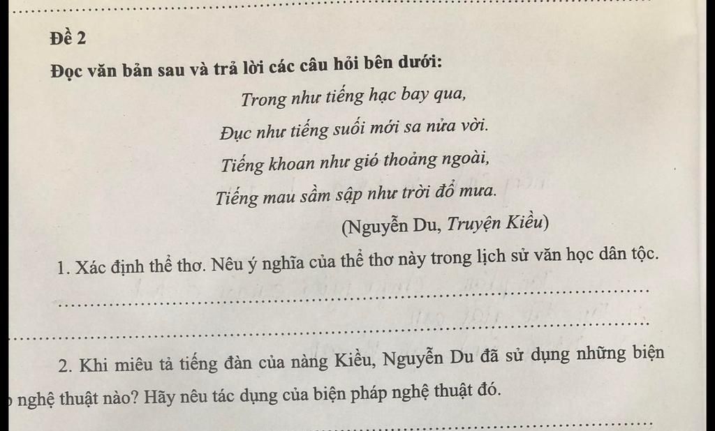 1. Xác định thể thơ. Nêu ý nghĩa của thể thơ này trong lịch sử văn học dân ...