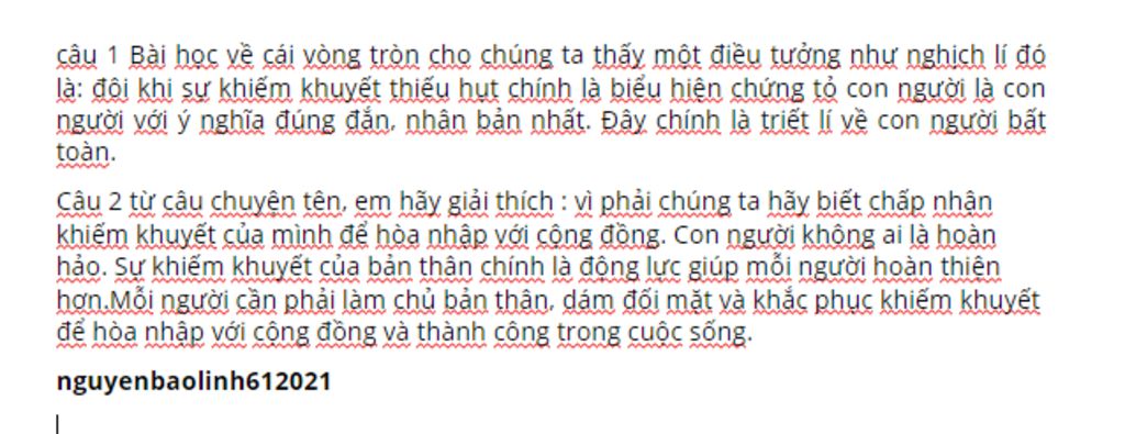 Câu chuyện về vòng tròn đã chỉ ra rằng, khi chúng ta biết chấp nhận những khiếm khuyết của bản thân, chúng ta sẽ có thể sống chậm lại, quan sát và cảm nhận cuộc sống xung quanh một cách tốt hơn. Khi vòng tròn chấp nhận thiếu sót của mình, nó đã tìm thấy sự hòa hợp với thiên nhiên và cuộc sống, thay vì cố gắng che giấu hay phản kháng. Trong cuộc sống, mỗi người đều có những điểm yếu hay khiếm khuyết, nhưng chính những khiếm khuyết ấy làm nên sự độc đáo của mỗi cá nhân. Khi ta chấp nhận những điều không hoàn hảo, ta sẽ dễ dàng hòa nhập với cộng đồng, vì xã hội không yêu cầu chúng ta phải hoàn hảo, mà cần sự chân thành và khả năng chia sẻ, giúp đỡ lẫn nhau. Sự khiêm nhường và khả năng chấp nhận bản thân sẽ giúp chúng ta cảm nhận được giá trị của những điều đơn giản và tạo ra một mối quan hệ gắn kết hơn với mọi người xung quanh.