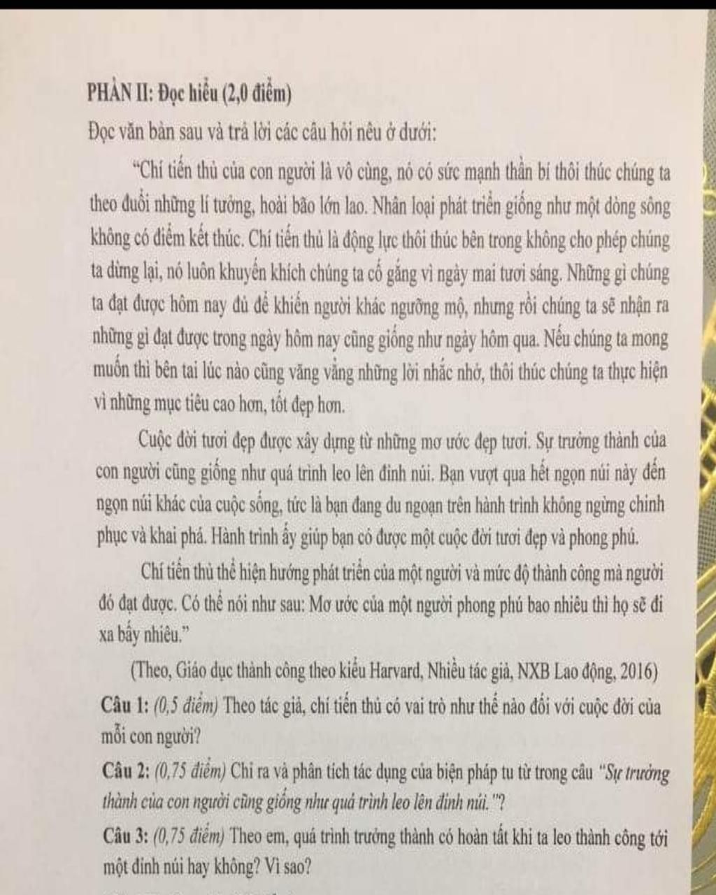 Câu 3. Theo em, quá trình trưởng thành có hoàn tất khi ta leo thành công tới một đỉnh núi hay không? Vì sao?