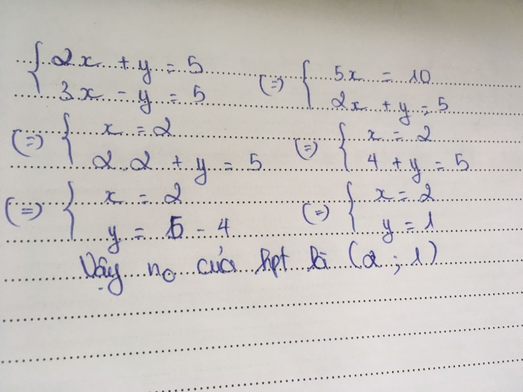 { 3x-y=5 {2x+y=5 { 4+y=5 { y=1