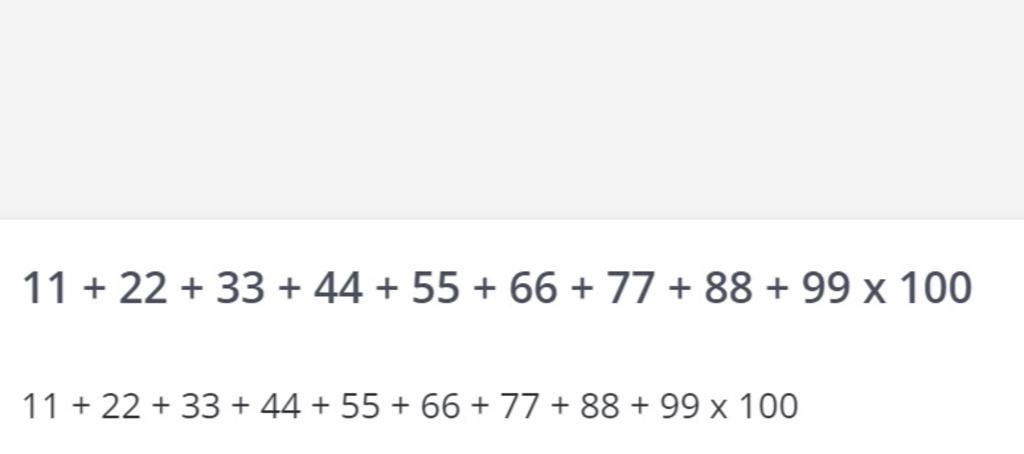 11 + 22 + 33 + 44 + 55 + 66 + 77 + 88 + 99 x 100