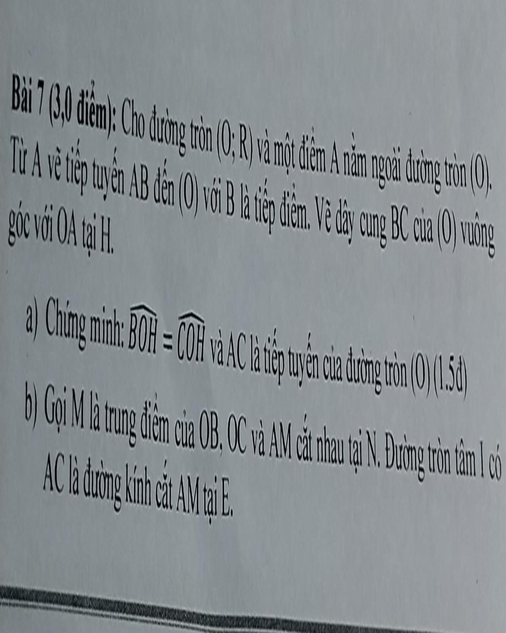 Bài 7,130 điểm): Cho dựng tròn (0.R) và một điểm A nằm ngoài đường mòn (01