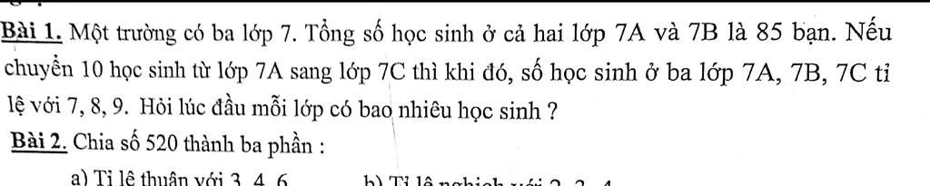 $\text{Gọi số học sinh của lớp }$`7A,` `7B,` `7C` $\text{ lần lượt là }$`a,` `b,` `c`