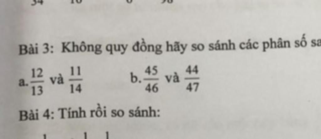 So sánh 1/46 bé hơn 3/47 nên 45/46 lớn hơn 44/47