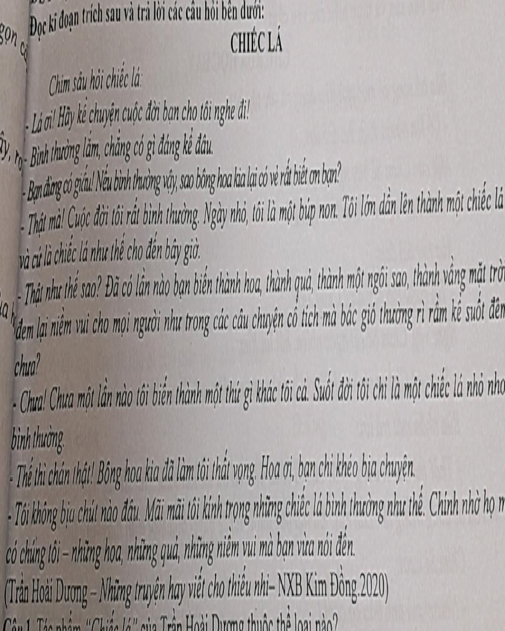 `-` Bài học mà em tâm đắc nhất sau khi đọc được tác phẩm là : phải luôn biết trân trọng và biết ơn từ những điều nhỏ nhặt nhất . Giống như bạn bông hoa đấy vậy , biết ơn chiếc lá bởi có cậu mà bạn ấy mới có thể sinh ra . Một chiếc lá bình thường cũng mang lại biết bao nhiêu ý nghĩa . Vậy nên ta hãy luôn phải cảm nhận mọi thứ từ tâm hồn , trái tim bản thân