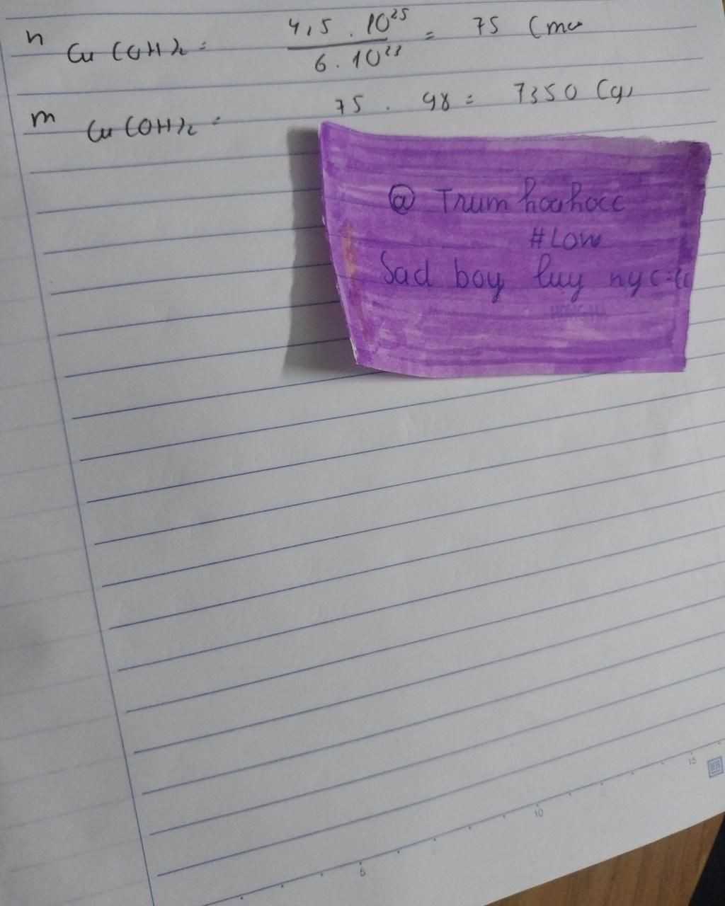 $n_{Cu(OH)_{2}}$ `=` `4,5.`$10^{25}$ `:` `6.`$10^{23}$ `=` `75` `(`$\text{mol}$`)`