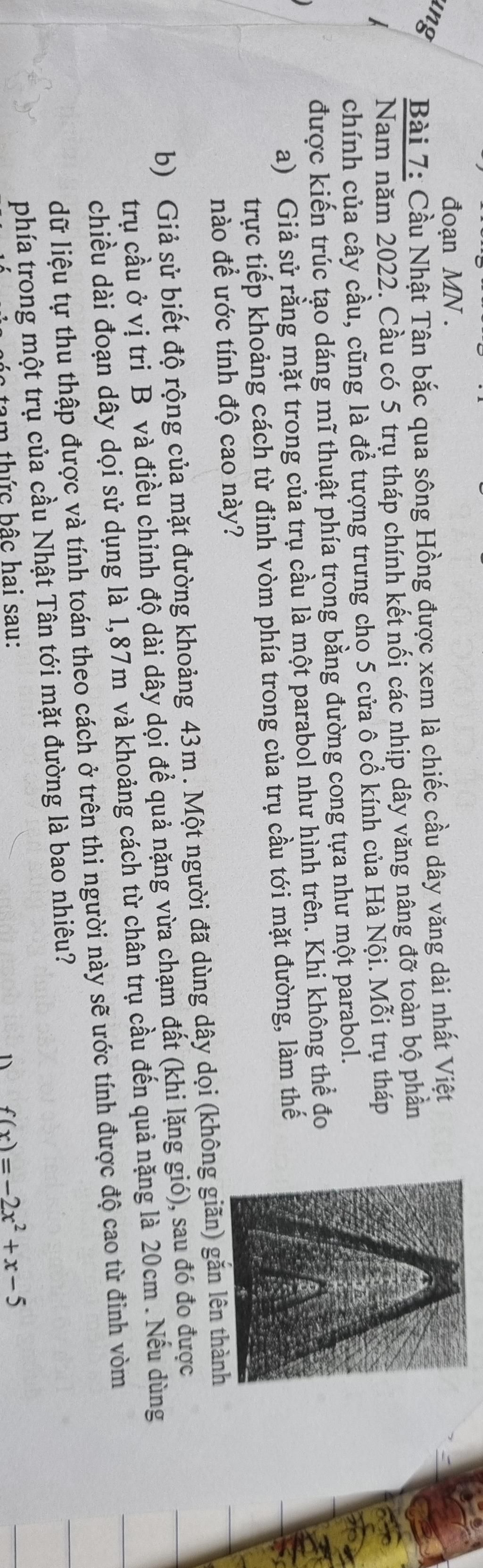 Bài 7: Cầu Nhật Tân bắc qua sông Hồng được xem là chiếc cầu dây văng dài nhất Việt