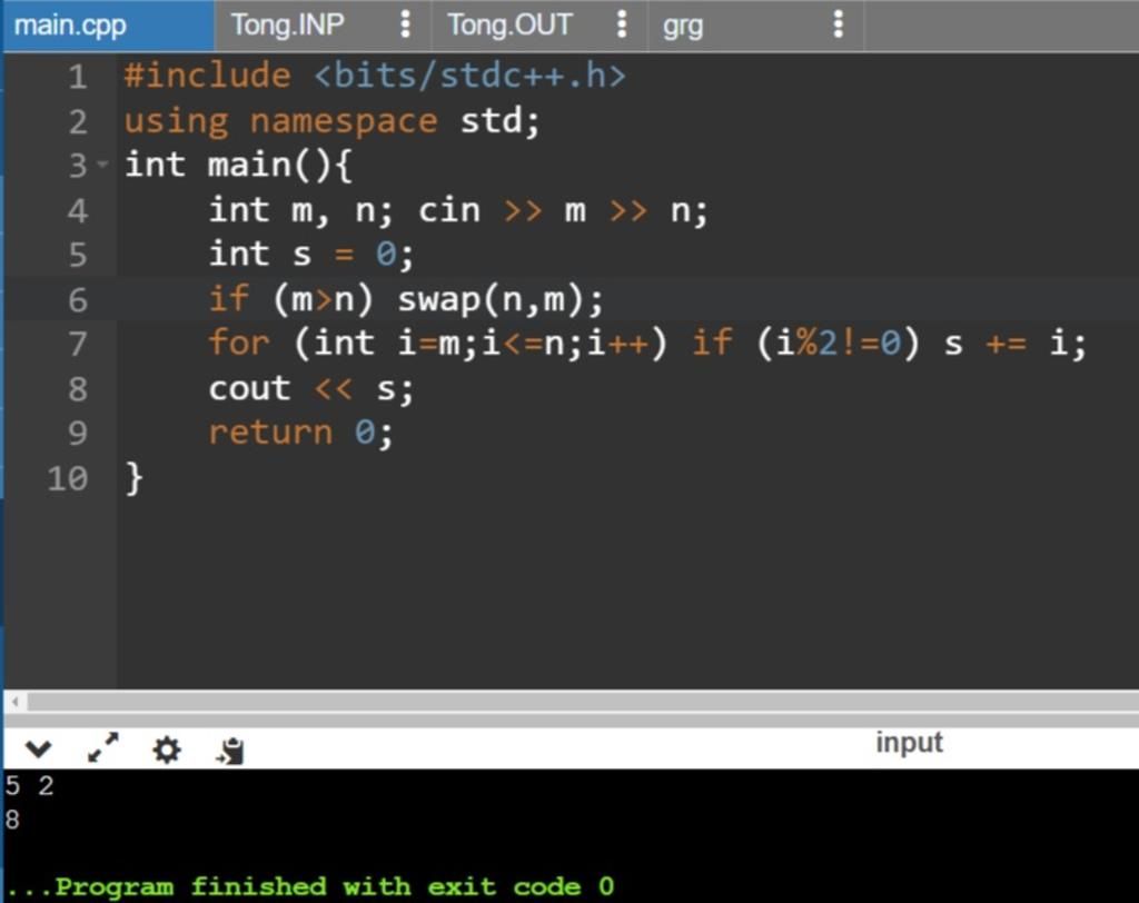 print('Tổng các số lẻ từ',m,'đến',n,'là:',s)
