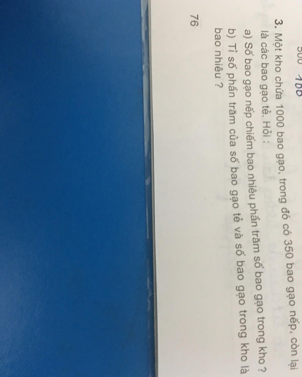 `b)` Số gạo tẻ chiếm số `%` là `:`