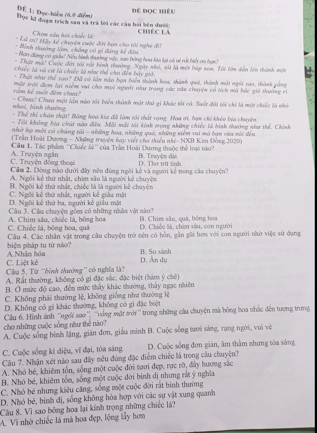 Đê 1: Đọc-hiểu (6.0 điểm)