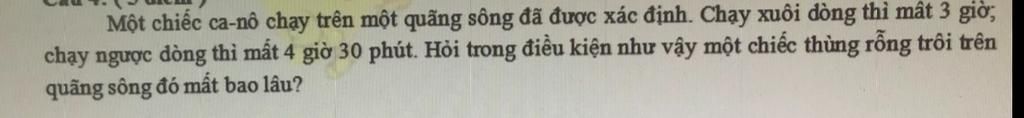 Cần mất số giờ để chiếc thùng trôi hết quãng sông là: