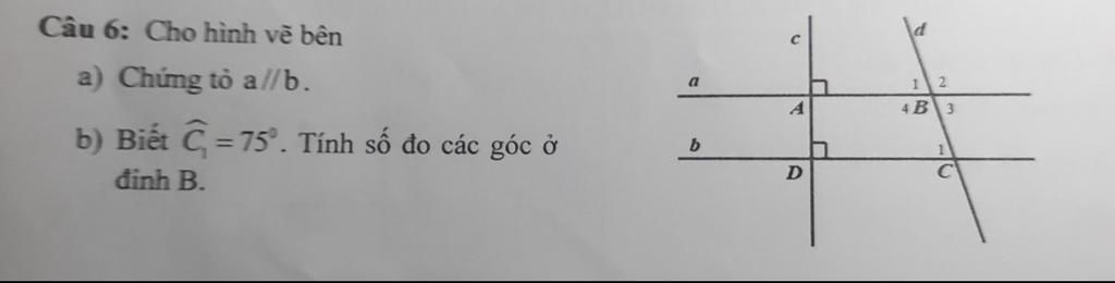 Ta có : $\widehat{B_1}$ = $\widehat{B_3}$ = $75^0$ ( đối đỉnh )