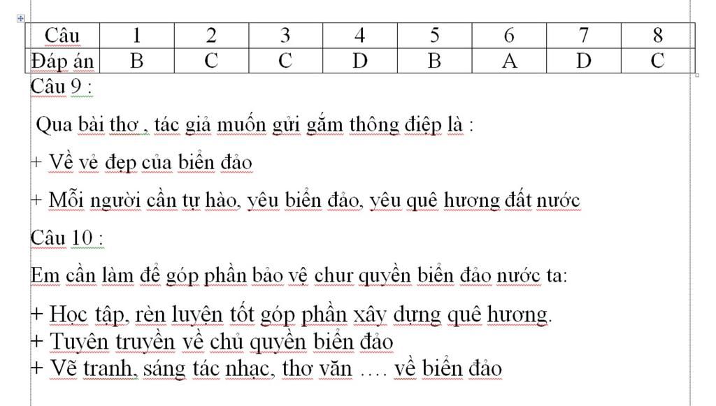 Câu 10. Em cần làm để góp phần bảo vệ chủ quyền biển đảo nước ta là: