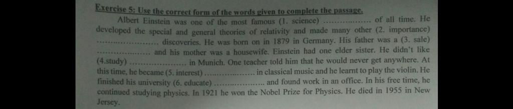 Exercise 5: Use the correct form of the words given to complete the passage.