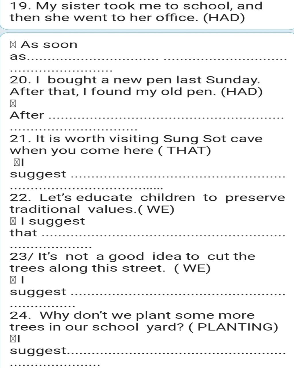 20. I bought a new pen last Sunday.