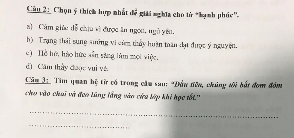 Câu `2` : Giải nghĩa từ "Hạnh phúc"