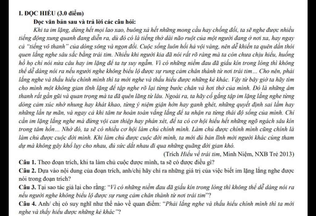 Câu 3: Vì niềm đau đôi khi không phải muốn chia sẻ là có thể chia sẻ được. Chúng ta cần cảm nhận từ tận đáy lòng mới có thể thấu cảm lẫn nhau được.