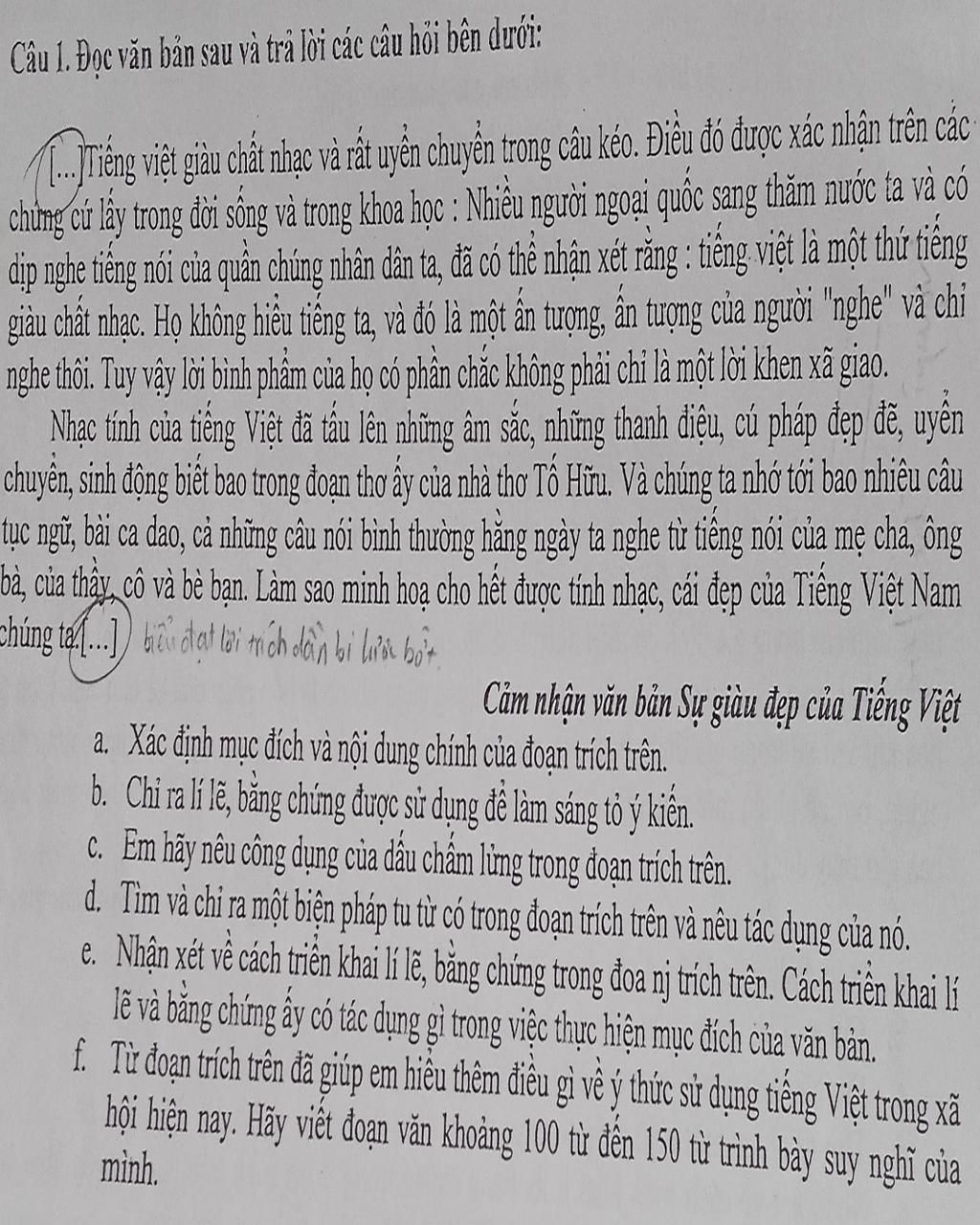 Câu 1. Đọc văn bản sau và trả lời các câu hỏi bên dưới: